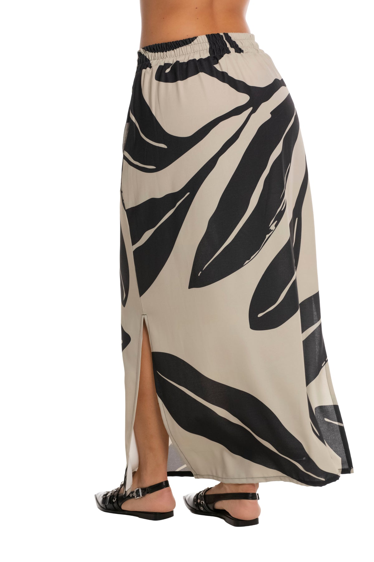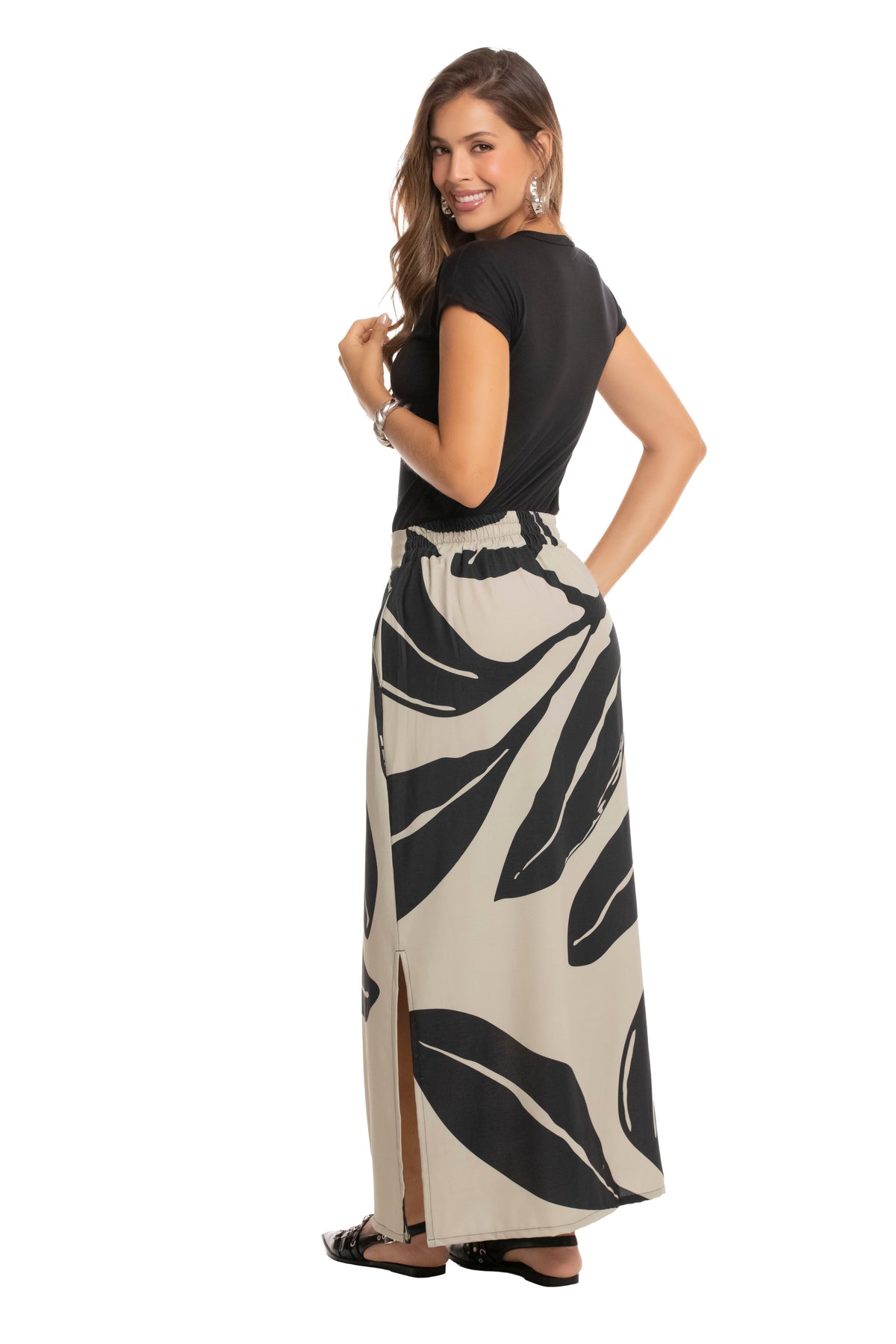 Falda En Poliester. Silueta Amplia, Cintura Elástica Para Ajuste Perfecto Y Abertura Lateral Sensual. Cuenta Con Bolsillos. Viste El Verano Con Estilo Y Elegancia