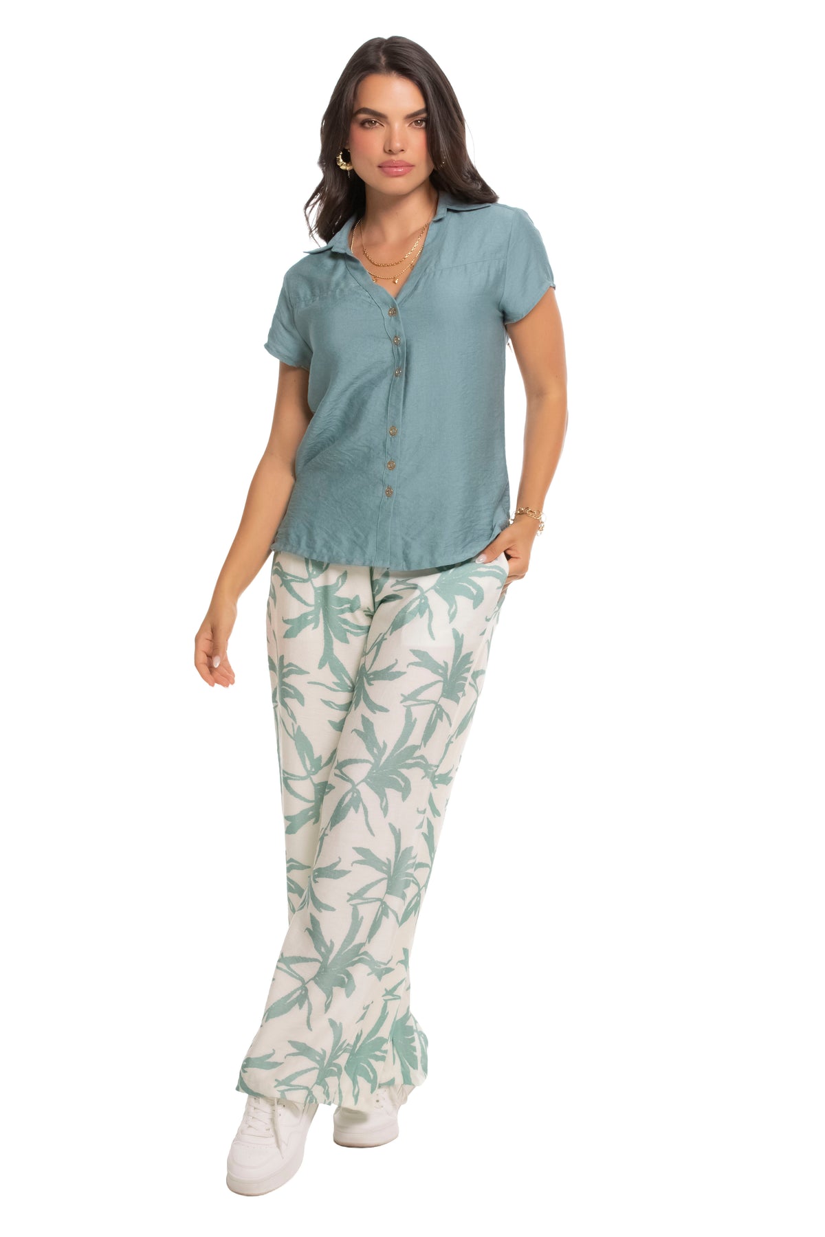 Blusa En Rayón Nylon. Silueta Amplia, Manga Corta Y Tela Ligera Para Una Máxima Frescura. El Color Moderno Y Relajante Lo Hace Perfecto Para Cualquier Outfit De Día