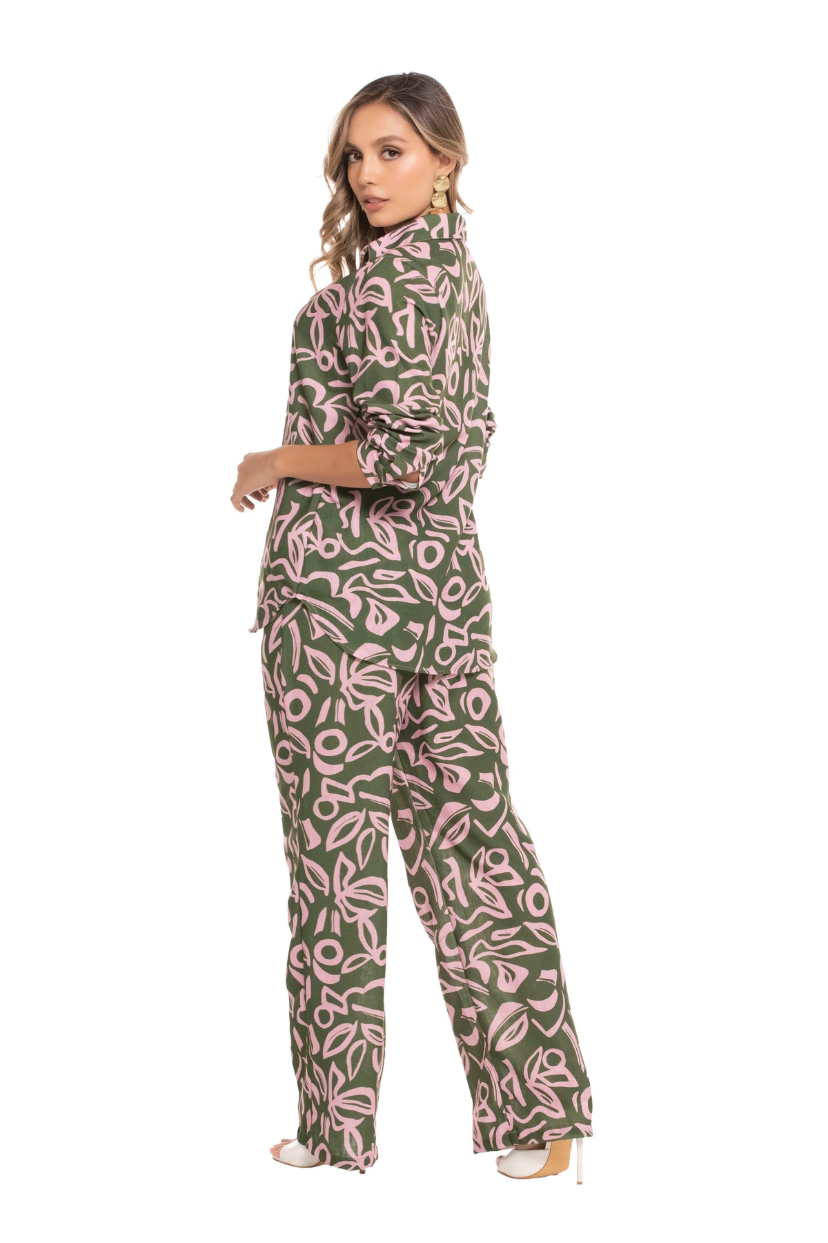 Blusa Para Dama Manga Larga Tejido Plano En Poliester. Silueta Amplia, Tela Fluida Y Ligera Con Un Estampado Llamativo Dando Un Toque Moderno Al Look