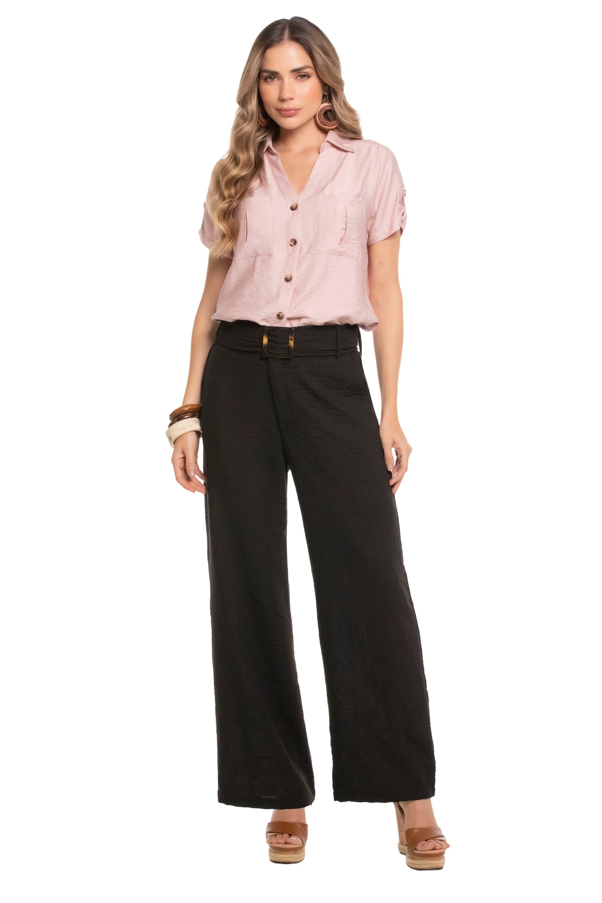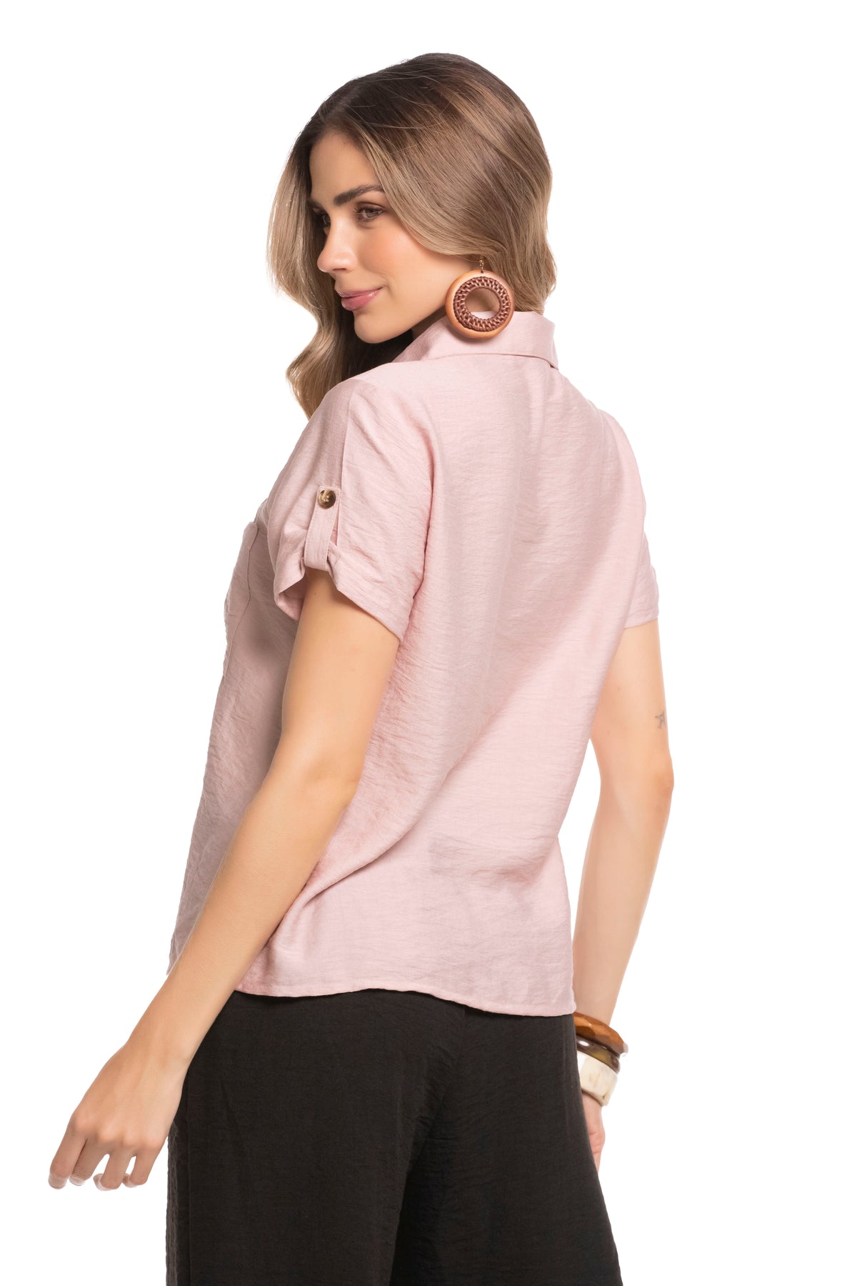 Blusa En Rayon Nylon. Silueta Semiajustada,Manga Corta Enrollable Y Cuello V Que Favorece La Figura. Perfecta Para Un Look De Oficina Relajado O Para Combinar Con Jeans