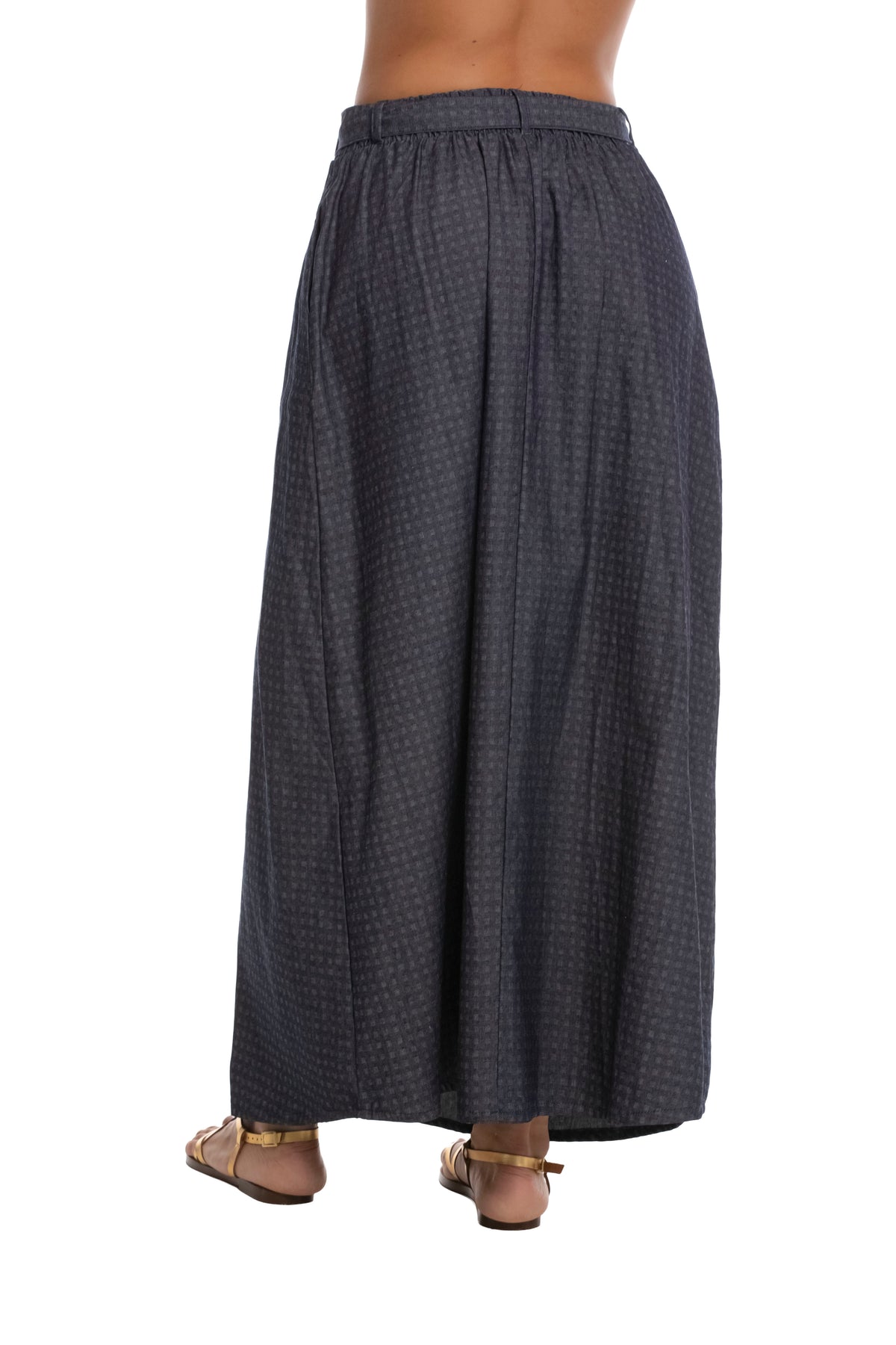 Falda En Algodon. Silueta Amplia,Sutil Y Amarre Frontal, Que Aporta Un Toque Elegante Y Relajado. Su Caída Suave Y Diseño Amplio Brindan Comodidad Y Estilo, Perfecta Para Crear Looks Frescos Y Sofisticados.