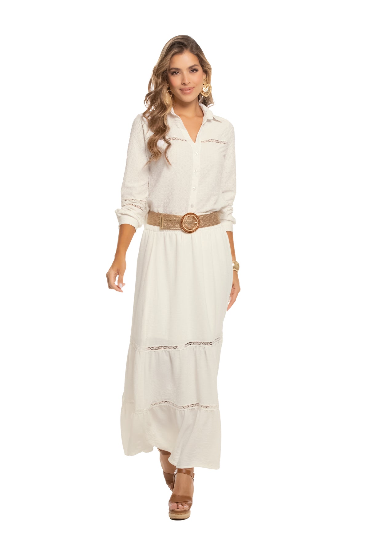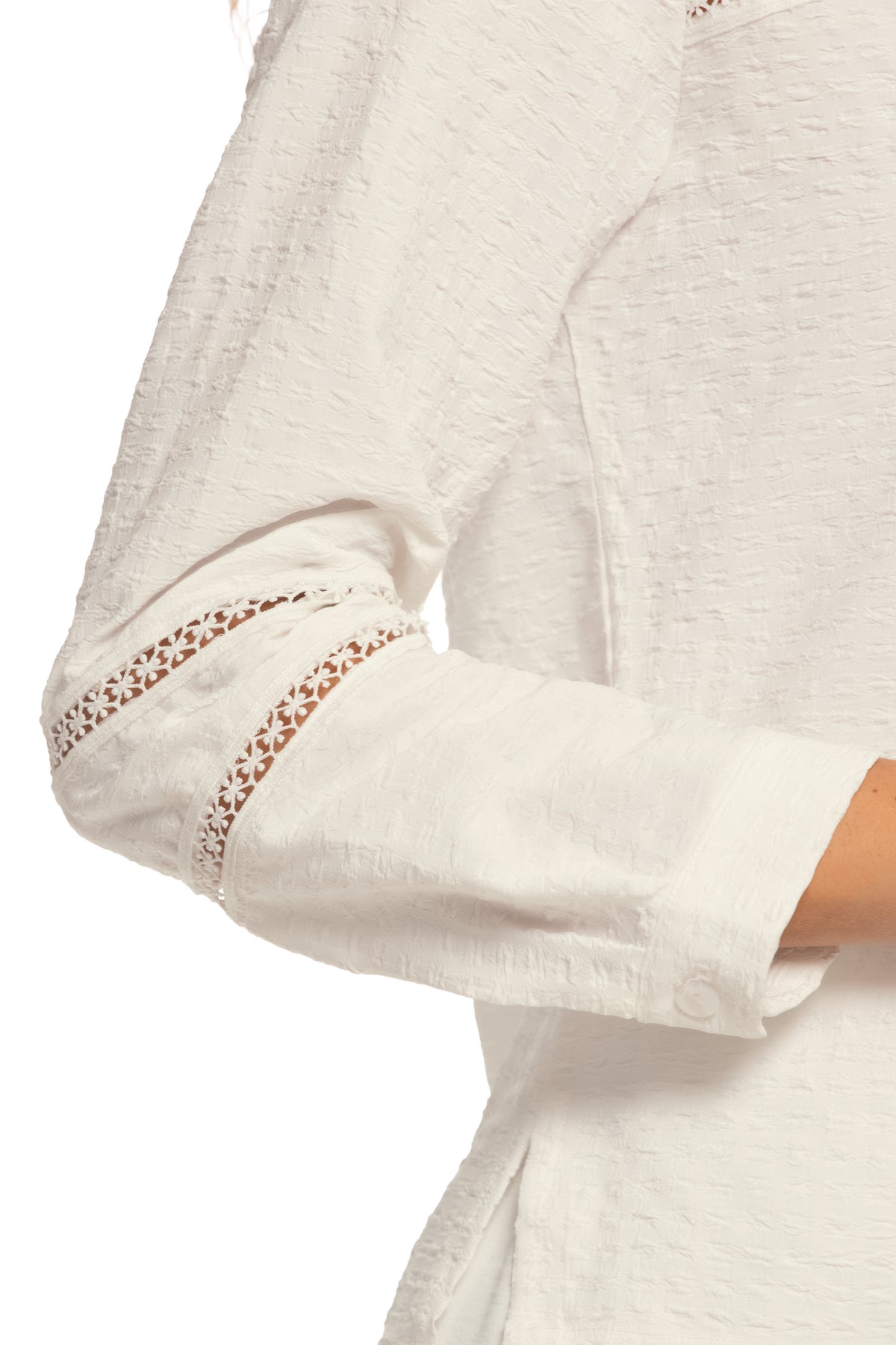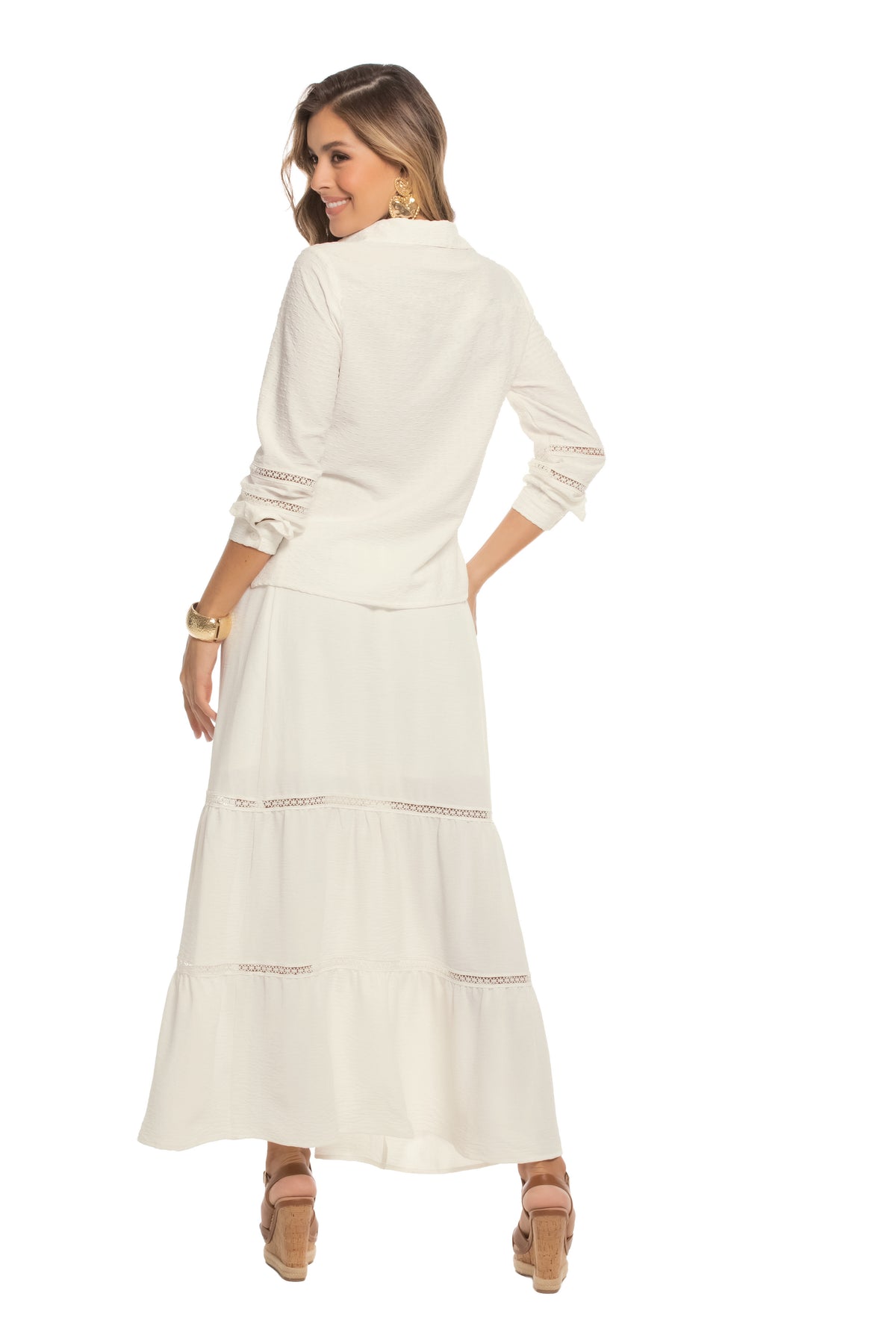 Blusa Para Dama Manga Larga Tejido Plano En Polietser Strech. Silueta Amplia, Con Puño Ajustado . Bordado En La Parte Superior De La Espalda Que Da Un Toque Femenino, Corte Ligeramente Suelto Que Aporta Comodidad