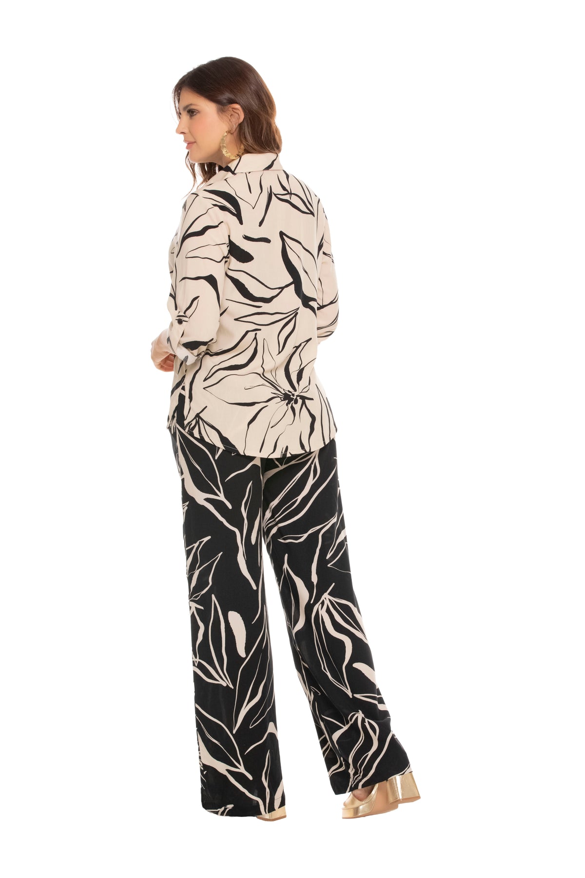 Pantalon En Rayon Viscosa Silueta Amplia, Corte Amplio Y Fluido, De Estilo Cómodo Y Elegante, Ideal Para Un Look Casual O De Verano.