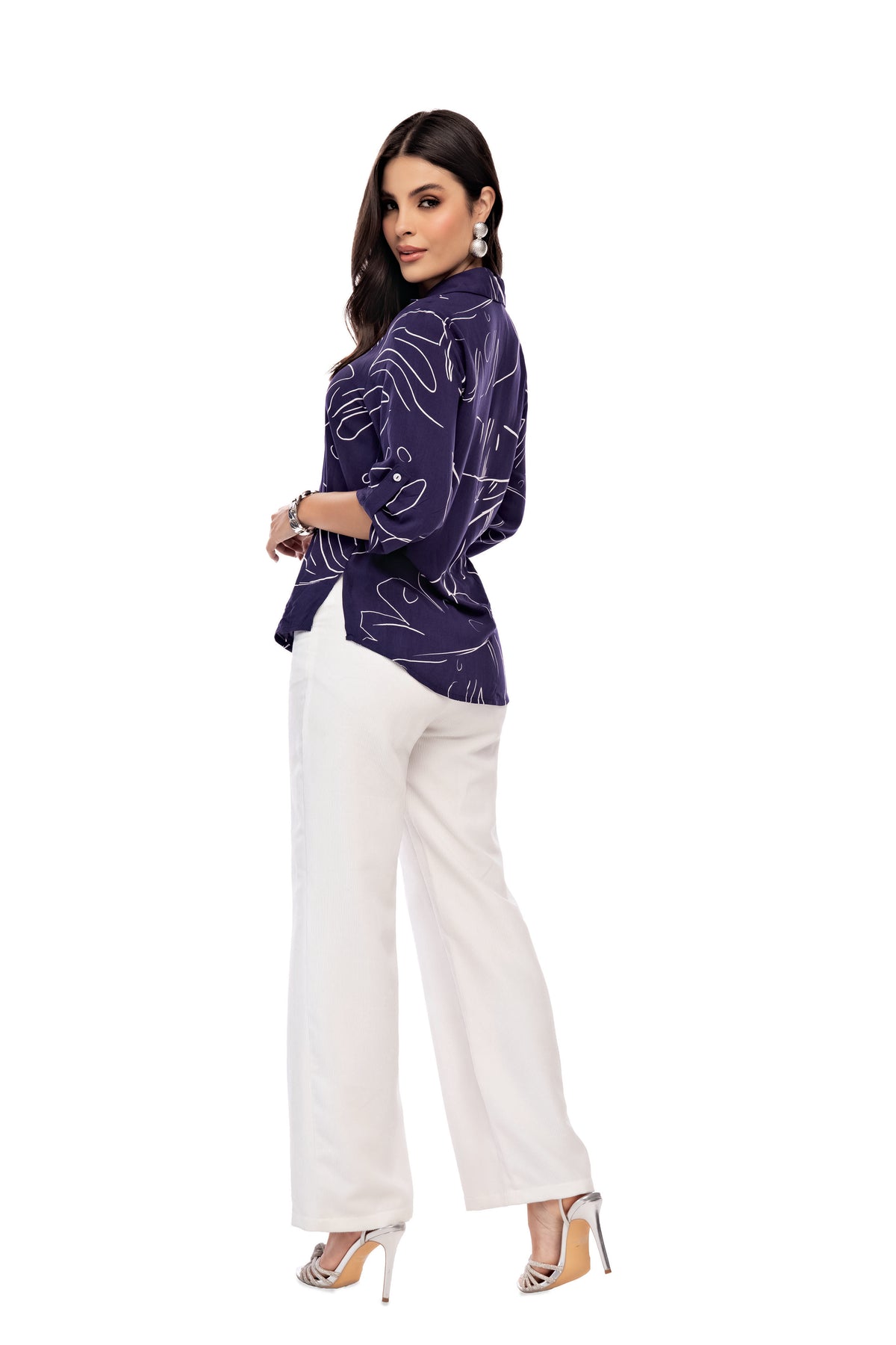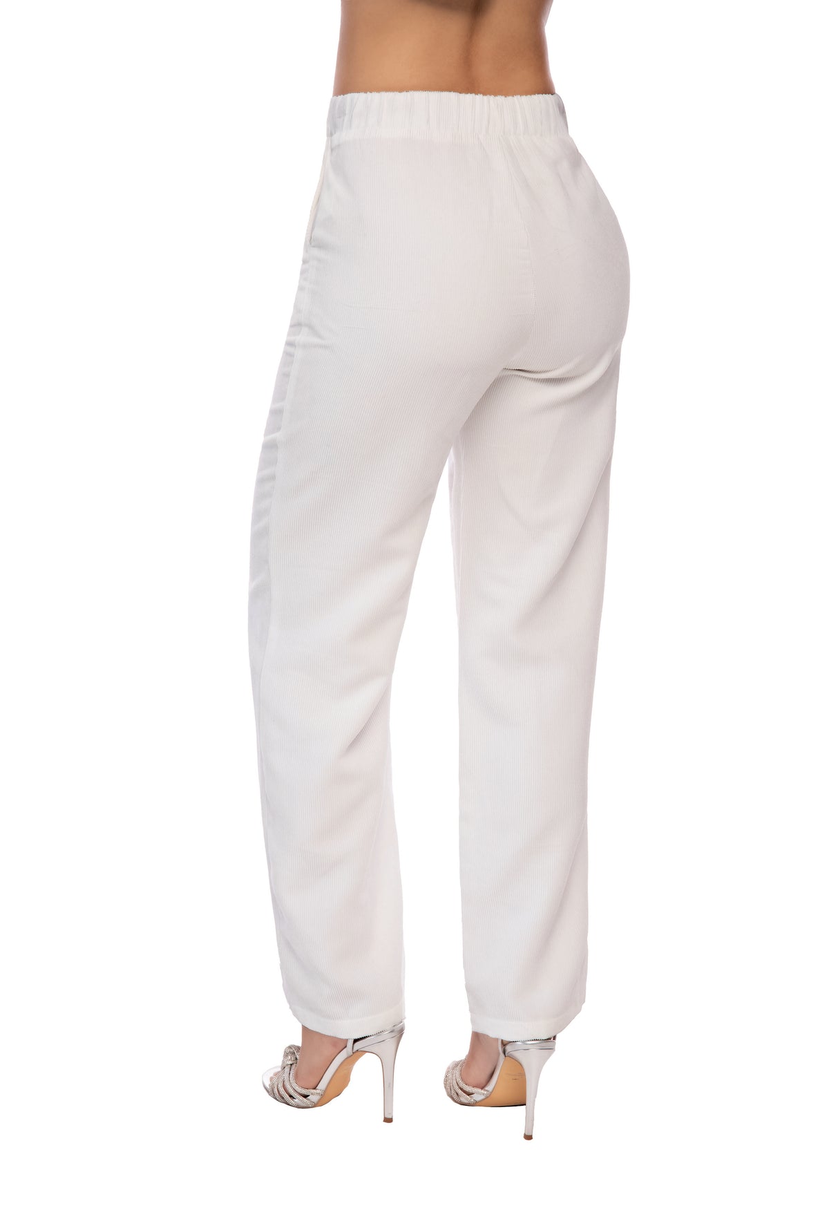 - Tela pana silueta semiajustado, con bolsillos, botón y cierre de cremallera.
