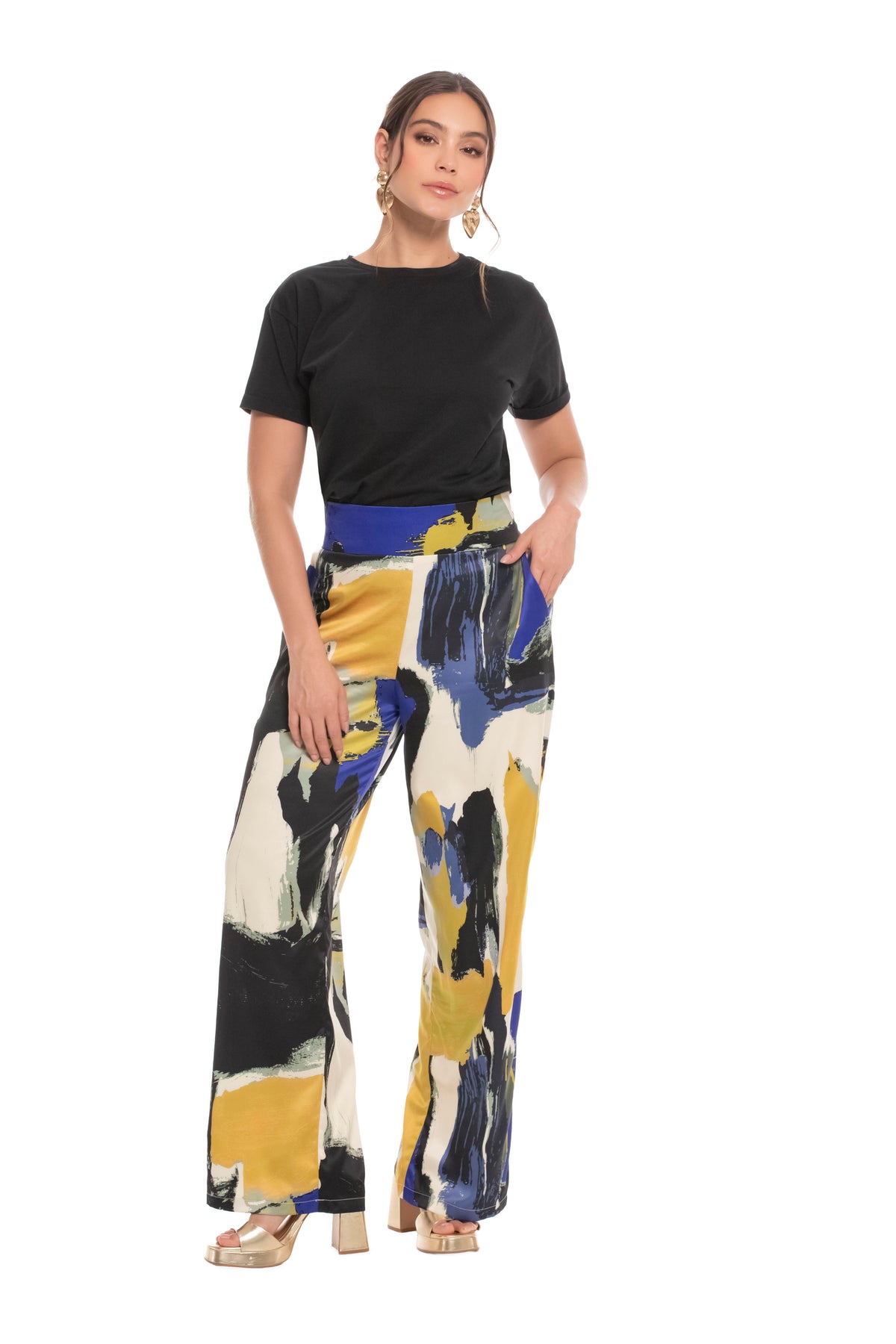 Pantalon En Poliester Strech. Silueta Amplia. Cintura Alta Y Caída Suelta. Ideal Para Un Look De Cóctel Atrevido Y Sofisticado O Eventos De Día Con Mucha Personalidad.