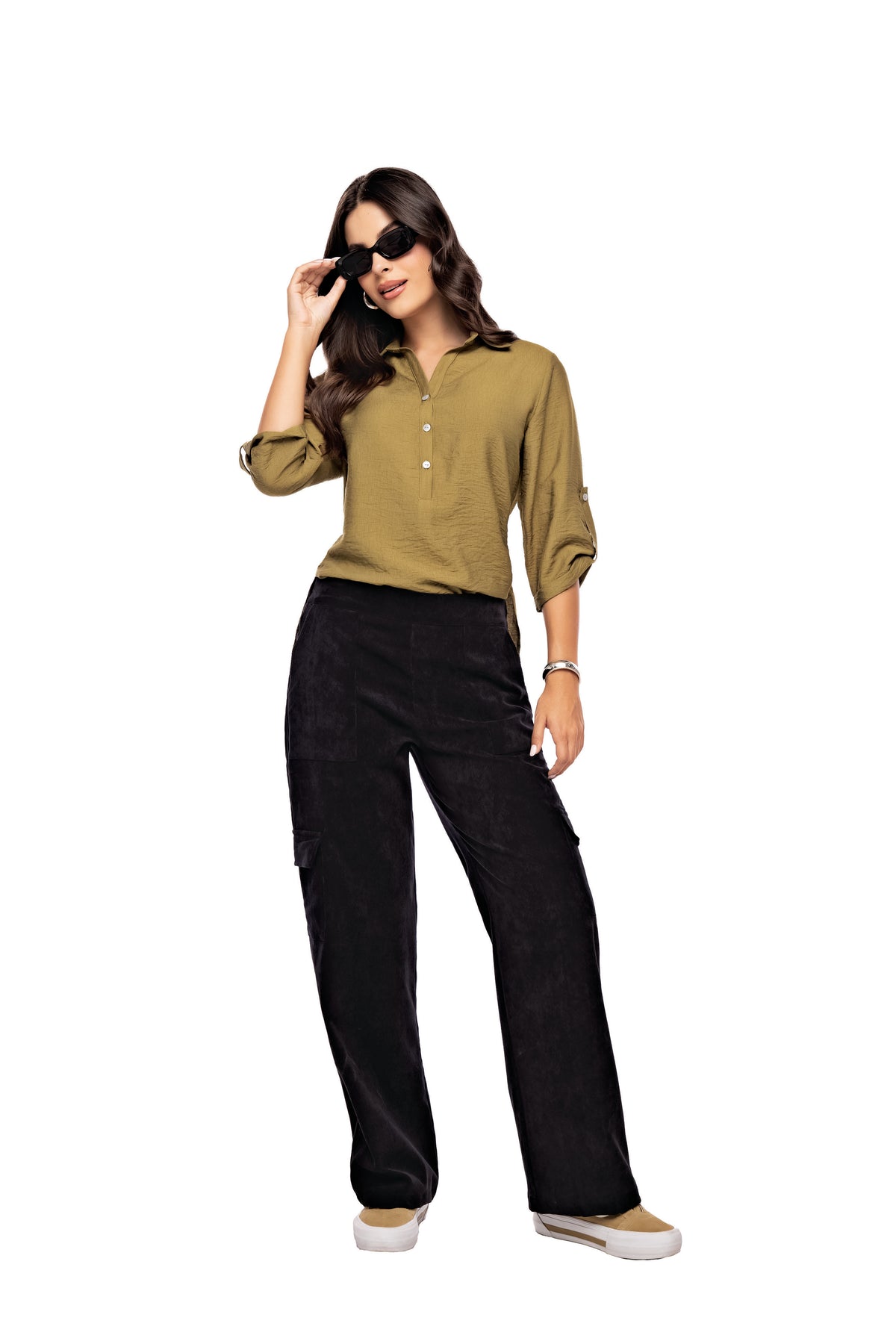 Pantalon En Poliester Nylon Tela Pana Silueta Amplia, Bolsillos Laterales A La Altura De La Cintura Y La Rodilla , Tela Ideal Para El Frio