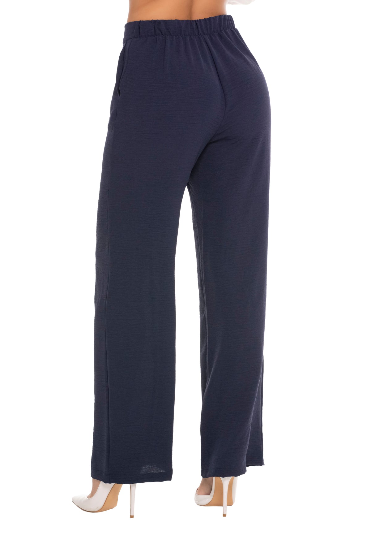 Pantalón En Poliéster Corrugado Tiro Alto Silueta Amplia