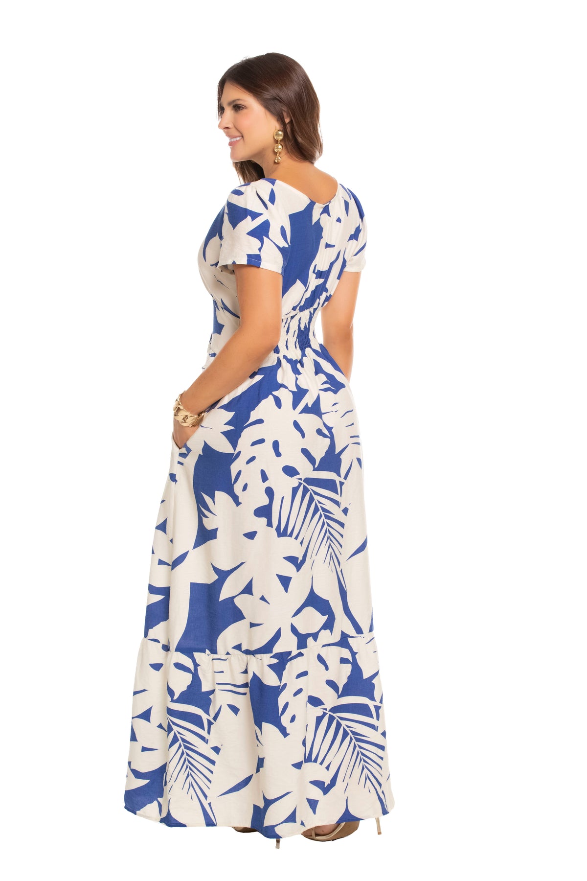 Vestido En Rayon Nylon Silueta Ampliaescote En V, Mangas Cortas, Botones Decorativos En La Parte Frontal Y Corte En La Cintura Que Realza La Silueta, Con Falda Amplia Y Fluida Que Aporta Comodidad Y Estilo.