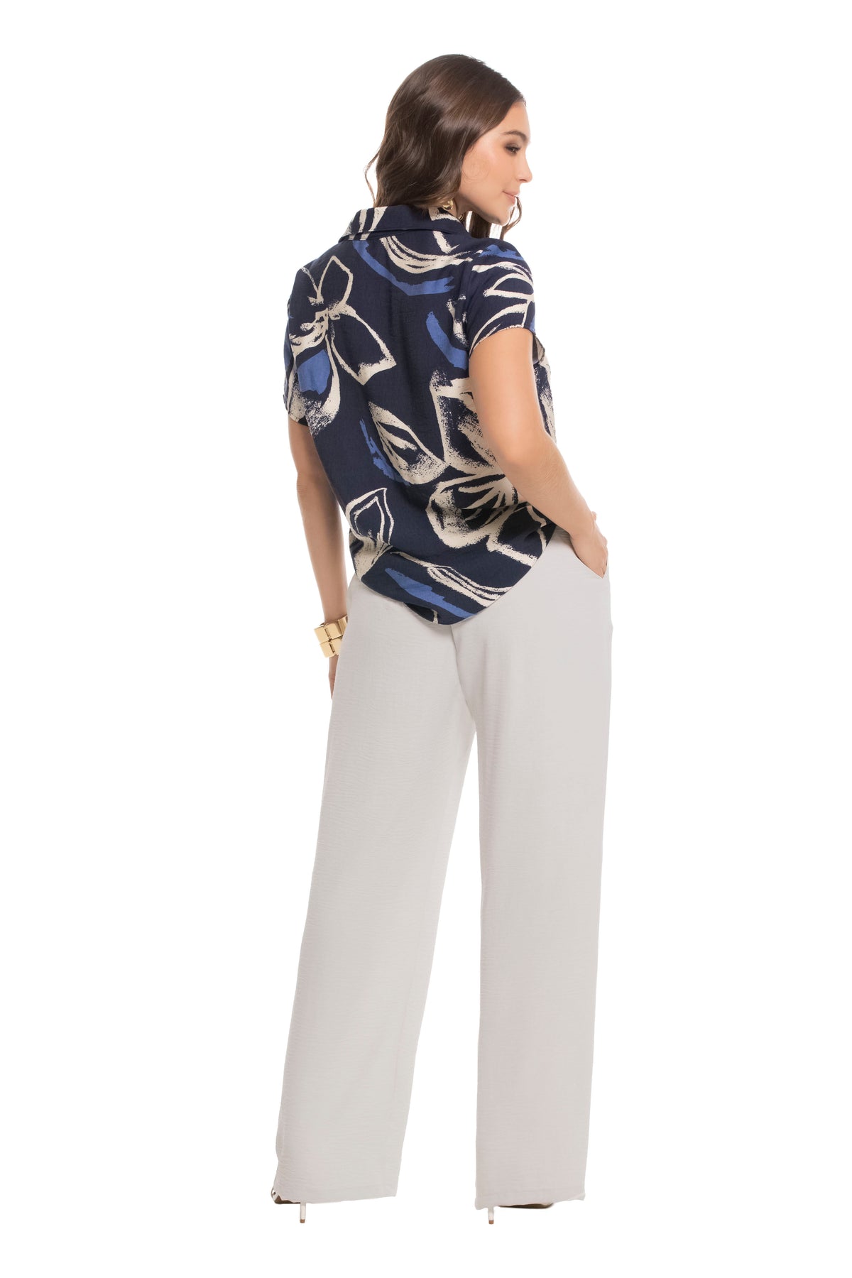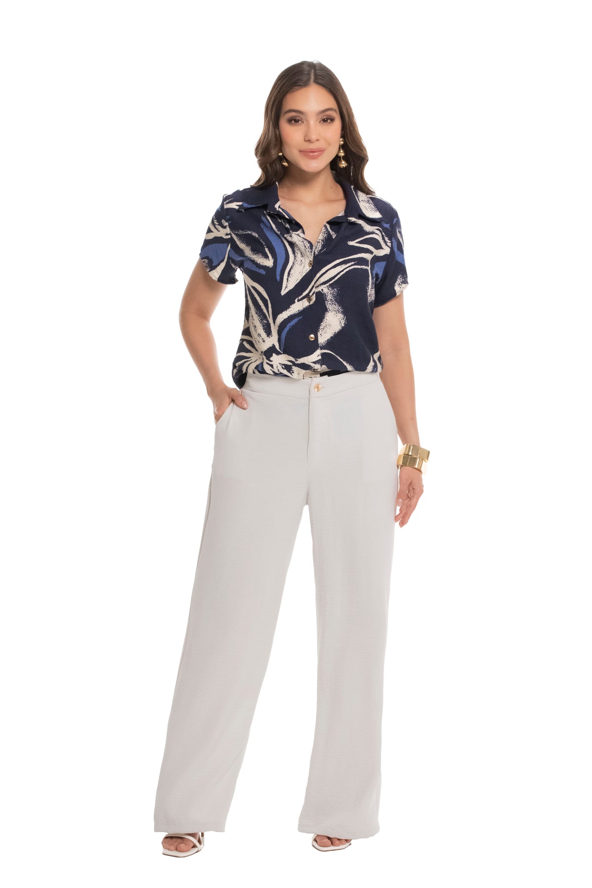 Blusa En Rayon Nylon Silueta Semiajustada, Corte De Camisa Clásica Con Cuello Solapa Y Abotonadura Frontal, Mangas Cortas Y Sueltas. El Largo Es Ideal Para Llevarla Ligeramente Metida Por Dentro O Suelta.