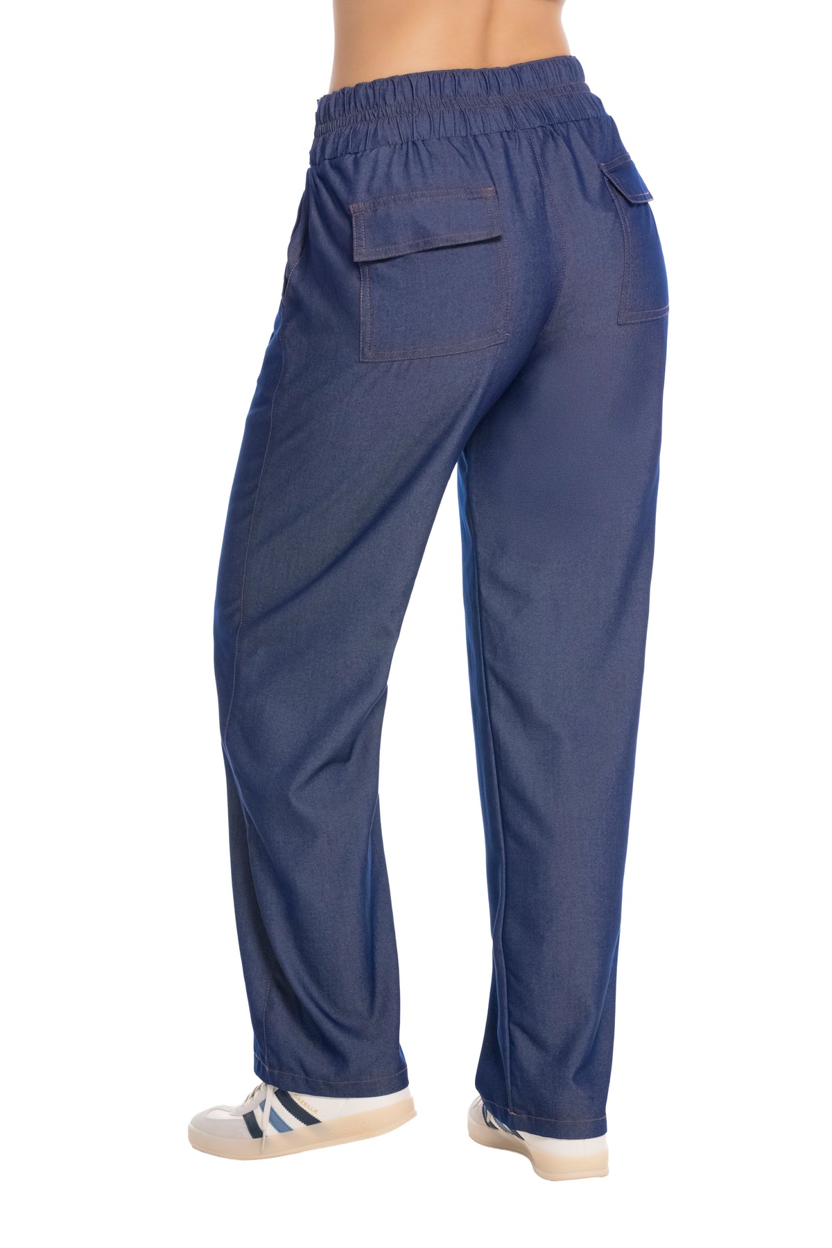 Pntalon En Chambray. Silueta Amplia, Corte Recto Y Suelto, Y Destaca En La Parte Trasera Por Sus Bolsillos De Parchecintura Elástica Con Ajuste Fruncido Y Cinturon De La Misma Tela, Cuenta Con Bolsillos