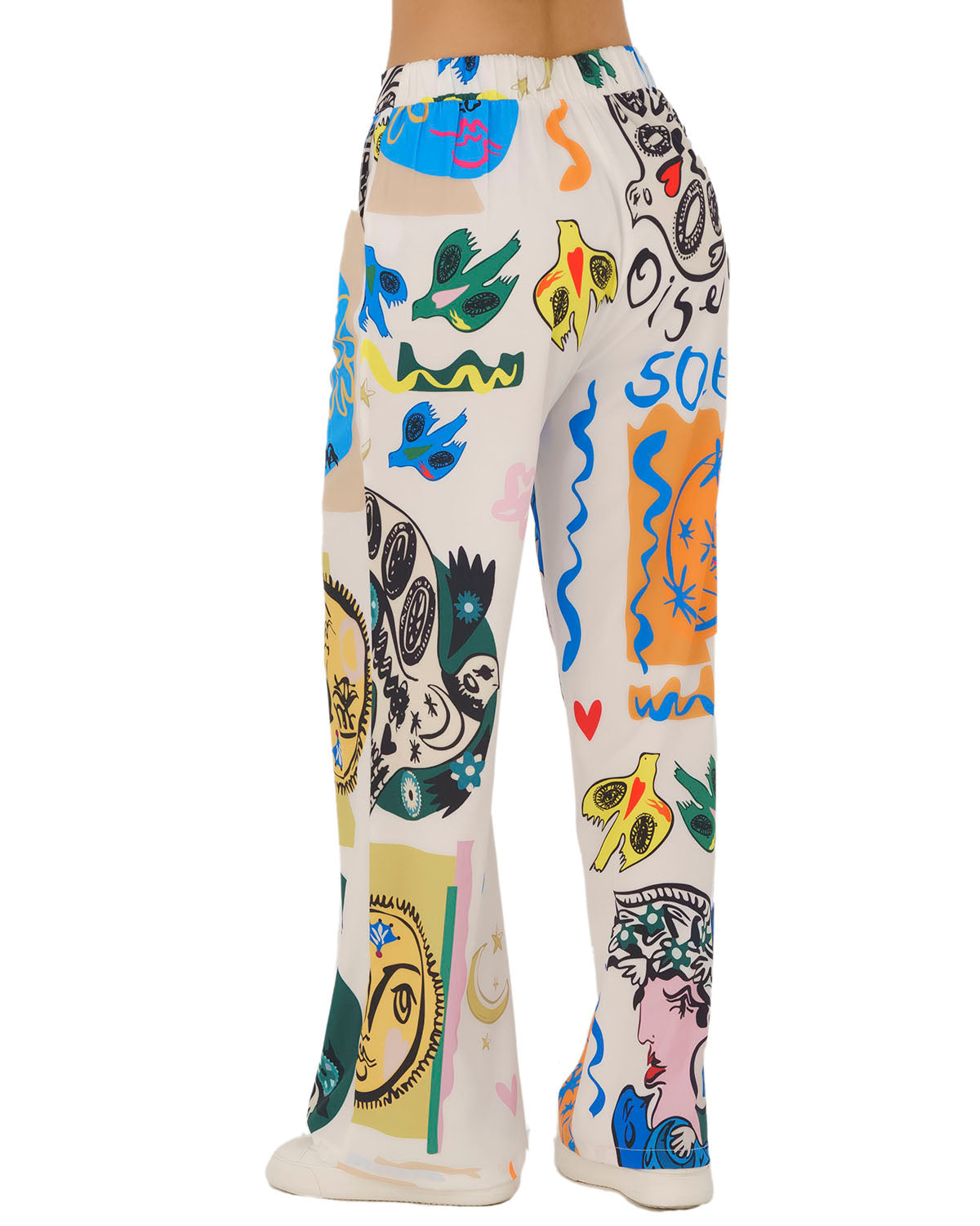 Pantalon En Poliester Strech Silueta Amplia (El Estampado Puede Variar En Cada Prenda)