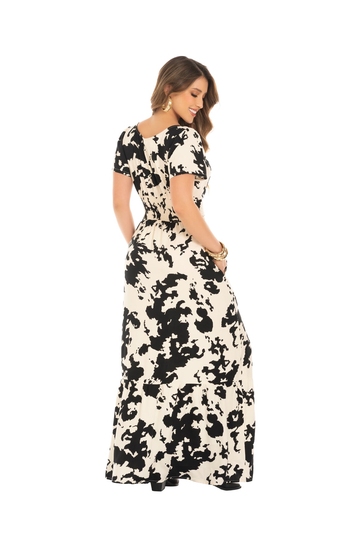 Vestido largo estampado blanco y negro – Vestido elegante mujer fluido